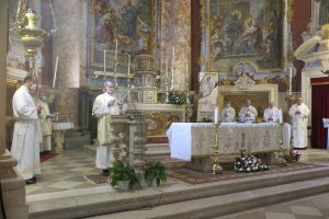 Dobrodošlicu biskupu na početku mise poželio je superior Rezidencije Družbe Isusove u Dubrovniku p. Vinko Maslać.