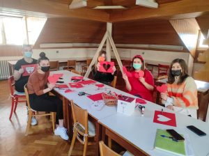 Nakon prezentacije i razgovora s učenicima su izrađivale srca od kolaž-papira na koja su zapisivali poruke podrške, ljubavi i ohrabrenja za korisnike Caritasa. Te poruke su su onda počele dijeliti korisnicima uz pakete hrane, po koje oni dolaze svaki mjesec u prostorije Caritasa Dubrovačke biskupije.