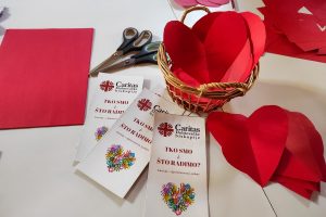 Caritas Dubrovačke biskupije organizirao je povodom Valentinova akciju pod nazivom “Ljubav je…”, kojoj je cilj bio upoznati učenice i učenike učeničkih domova s pojmom i djelovanjem Caritasa, koji jest Ljubav, ali i izraditi srca s motivirajućim porukama za korisnike pomoći. Na taj način su se srednjoškolci velikog srca povezali i podijelili svoju ljubav s potrebitima.