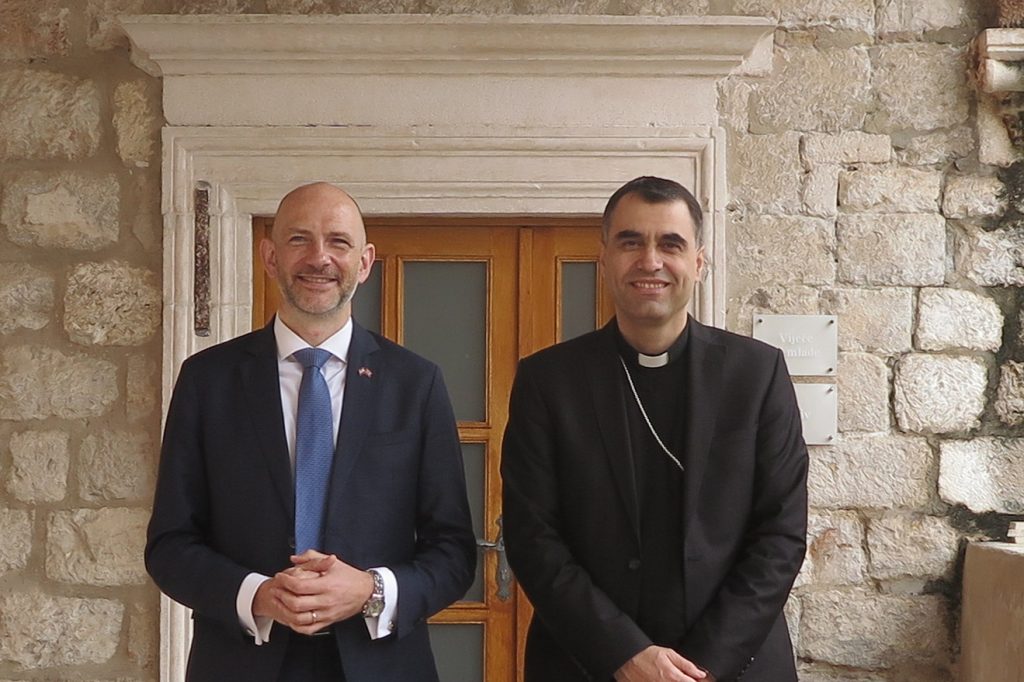Dubrovački biskup mons. Roko Glasnović primio je veleposlanika Ujedinjene Kraljevine Velike Britanije i Sjeverne Irske Simona Thomasa, koji ovih dana boravi u posjetu Dubrovniku, u Biskupskom ordinarijatu u Dubrovniku u četvrtak, 1. travnja.