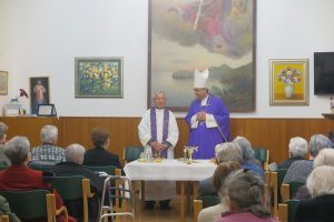 U radosnom ozračju riječi zahvalnosti biskupu na kraju mise uputili su kapelan Grubišić i ravnateljica doma Mirjana Vujnović.