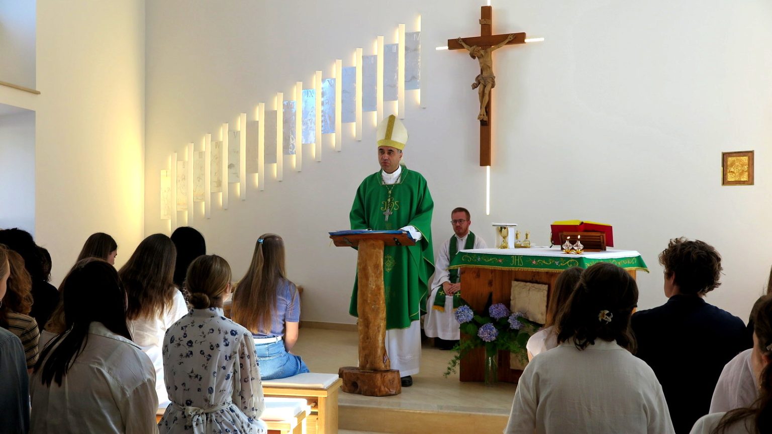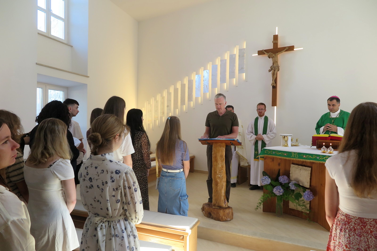 Misu je biskup Glasnović slavio za sudionike ljetne škole i njihove obitelji i prijatelje kao i za mir u Ukrajini i svijetu. S biskupom je slavio sveučilišni kapelan vlč. Branimir Jagodić i grkokatolički svećenik s Ukrajinskog katoličkog sveučilišta o. Andriy Shestak.