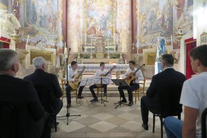 Akademiju nakon mise vodili su maturanti Antonia Šurković i Ivo Kristović, a u programu su glazbenim izvedbama nastupili školska ženska klapa, učenik Robert Prusina na gitari, gitarski trio učenika Umjetničke škole Luke Sorkočevića u sastavu: Teo Dabelić, Kristijan Žerovnik i Robert Prusina, dok su poeziju i molitvu izrekli Dora Vicelić, Antun Pende i Mihael Miloslavić. Tijekom programa voditelji su podsjetili okupljene na brojna značajna događanja u životu škole kroz proteklu godinu. Prisjetili su se gostiju koje je škola primila, ekskurzija i izleta na koje su učenici putovali, smotri i radionica na kojima su sudjelovali, izvrsnih rezultata na županijskim i, posebice ove godine, na državnim natjecanjima, sportskih rezultata i humanitarnih akcija.