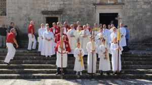 Dan ranije na jutarnjem euharistijskom slavlju u župi Svih svetih u službu župnog vikara uveden je don Mišo Pecotić, koji će također biti i pastoralni suradnik u župama Žrnovo, Račišće i Punat. Na misnom slavlju koje je predslavio župnik Kovačević pjevao je župni zbor sv. Cecilija iz Valpova s voditeljicom s. Danijelom Škoro. Naime, skupina vjernika, među kojima su bili dosadašnji župni vikar u Valpovu don Luka Ćosić i župni zbor, hodočastila je bl. Mariji Propetog Petković u Blato. Dosadašnja voditeljica njihovog zbora s. Danijela vraća se u Blato nakon devet godina i prema dekretu provincijalne predstojnice tu će vršiti službe zborovoditeljice i kućne predstojnice u kući matici u Blatu.