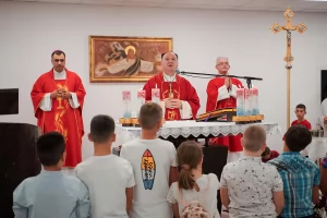 Na početku homilije biskup Palić protumačio je važnost crkava i molitvenih prostora, u kojima se vjernici okupljaju kako bi se izgrađivala „živa Crkva“. „Nemaju smisla velebno izgrađene crkve, ni gradnja novih crkava ako u njima ne učimo postajati iz dana u dan bolji ljudi i bolji kršćani“, naglasio je biskup Palić. Kazao je, također, da nema prave Crkve Kristove gdje se vjera ne ispovijeda i sakramenti ne slave u zajedništvu s Petrom, Papom i nasljednicima apostola, biskupima.