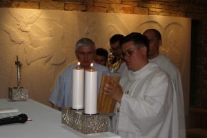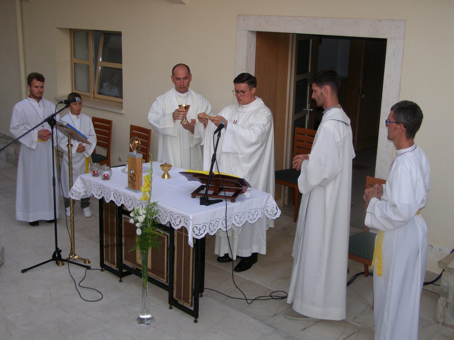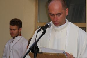 S predvoditeljem slavlja u koncelebraciji su bili vlč. Robert Jugović, župnik župe sv. Ivana Krstitelja u Županji, i  vlč. Ivan Matijević, pastoralni suradnik u Centru za pastoral mladih Ivan Pavao II. u Sarajevu. Župnik župe Svih svetih u Blatu don Željko Kovačević, je, nakon pozdrava predvoditelju slavlja, bio na raspolaganju vjernicima za sakrament pomirenja. Euharistijsko slavlje pjesmom su pratile članice župnog zbora mladih »Stope« sa s. M. Julijanom Beretić.