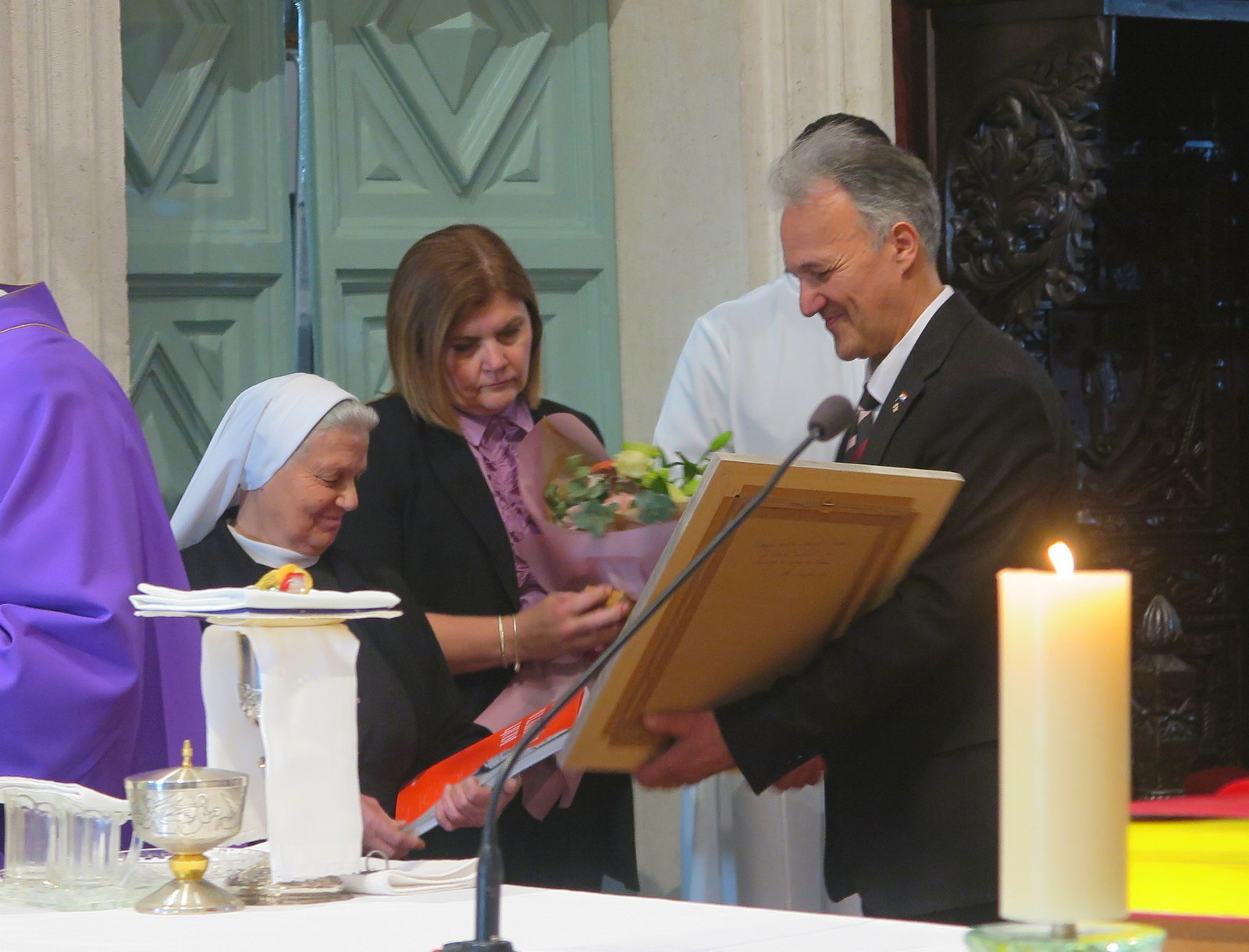 Gospođa Knežević je uime svih onih „iza oltara“, sestrinih suradnika, pjevača, ministranata i čitača, izrazila iskrenu zahvalnost na suradnji koja je bila izvrsna te poželjela sestri svako dobro i Božji blagoslov, uručivši joj prigodni dar za sjećanje.