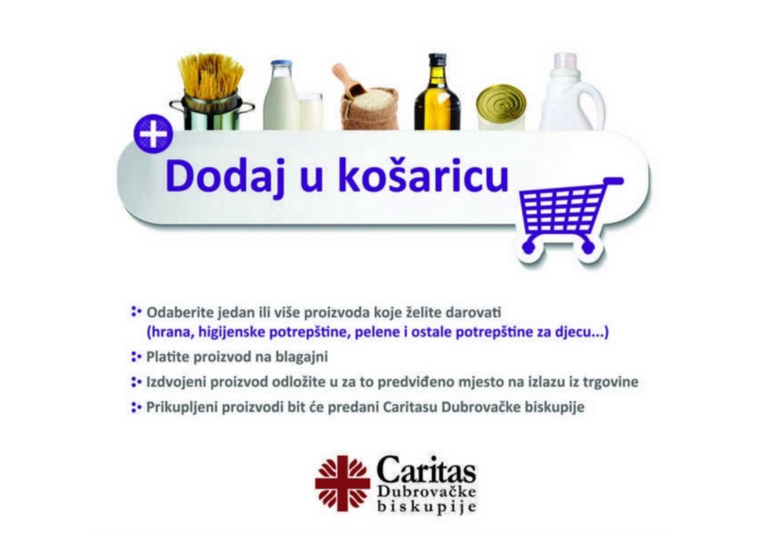 Caritas Dubrovačke biskupije i ove godine pokreće tradicionalnu korizmenu akciju “Dodaj u košaricu” u suradnji s trgovačkim lancima i trgovinama na području biskupije: području grada Dubrovnika, Župe dubrovačke, Konavala te otoka Korčule.
