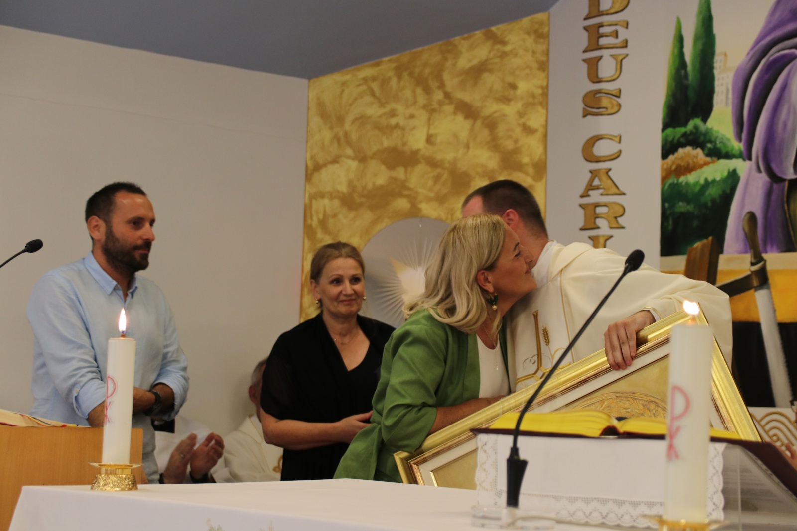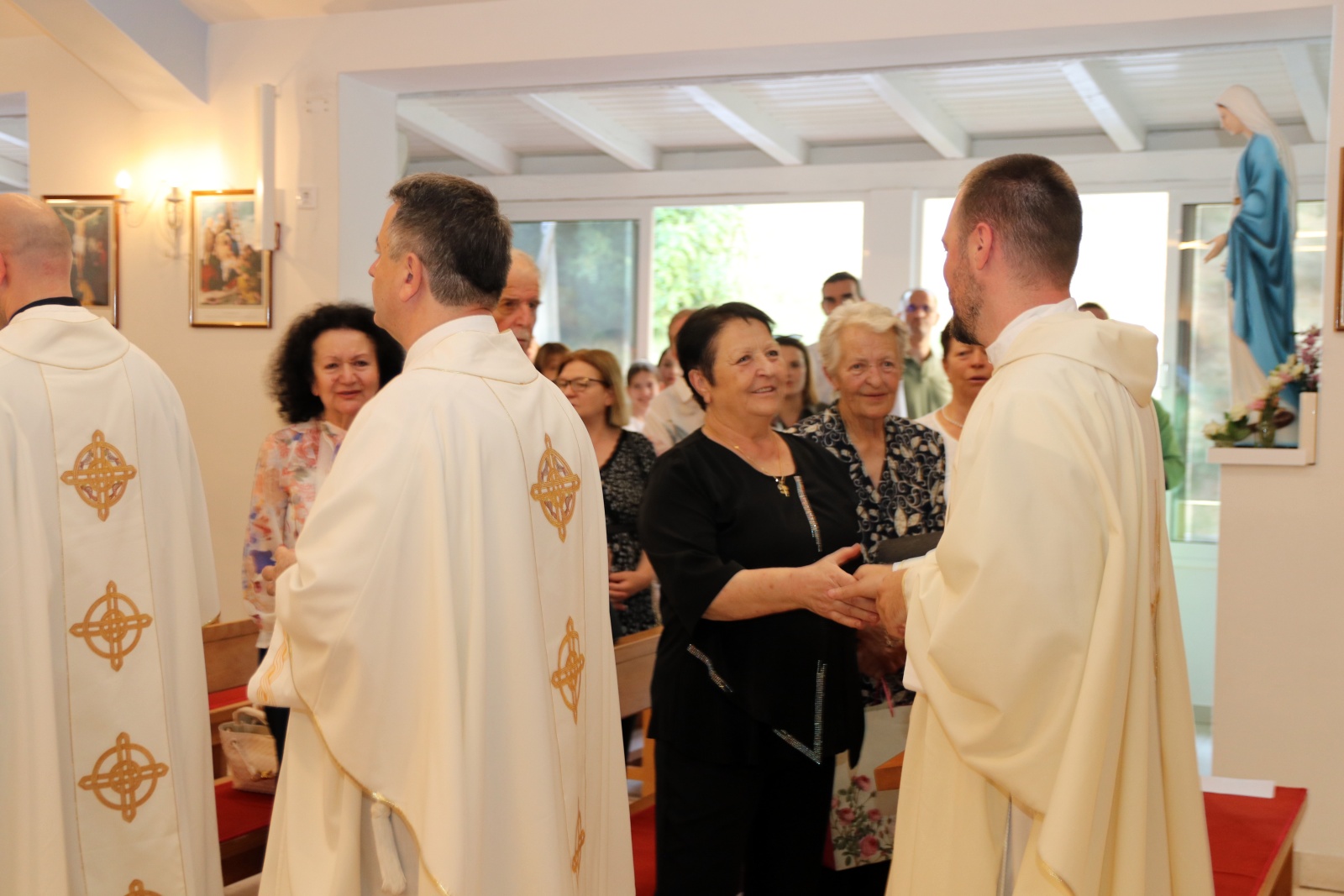 Članovi župnog pastoralnog i ekonomskog vijeća na kraju su čestitali mladomisniku uime cijele župne zajednice i uručili mu na dar sliku Svete Obitelji.