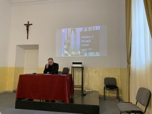 Okupljene je uvodno pozdravio generalni vikar Dubrovačke biskupije mons. Ivica Pervan koji je prenio pozdrave biskupa mons. Roka Glasnovića te zaželio dobrodošlicu predavaču kojemu ovo nije prvi posjet najjužnijoj hrvatskoj biskupiji. Potom je dr. Žižić, profesor na KBF-u Splitu te sveučilištima Urbanianum i Anselmianum u Rimu, održao izlaganje pod naslovom „Glazba u liturgiji Crkve: polazišta, kriteriji, smjernice“. Iznio je niz razmišljanja o ulozi liturgijske glazbe u samome bogoslužju, vjerničkim zajednicama i kulturi Crkve. Polazišna točka bila je činjenica da glazba nije nešto popratno i sporedno već sastavni dio liturgije. Glazba je, kako je istaknuo predavač, čin i pjesma vjere.