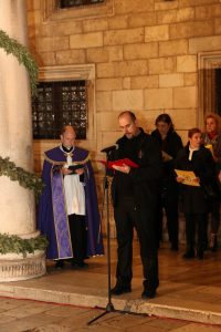 Službu riječi predvodio je katedralni župnik don Marin Lučić. U prigodnom nagovoru katedralni župnik je naglasio da nas je Bog toliko ljubio da je došao k nama kako bismo mu otvorili svoje srce. „Bog dolazi, on nas poziva, to je radost da Bog nije daleko nego blizu, u našem srcu, on je bliži nama nego li mi sami sebi“, kazao je župnik Lučić te potaknuo okupljene vjernike da im ovo došašće bude vrijeme otvorenosti i promišljanja o tome što je Bog napravio za nas i što mi trebamo napraviti za druge. Zaključio je riječima: „Neka nam ovo došašće na poseban način pomogne da prepoznamo Boga u čovjeku, u svima koje ćemo susresti“.