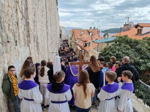 Dječji križni put ulicama povijesne jezgre Dubrovnika upriličen je u subotu 2. ožujka u organizaciji dekanata Dubrovnik 1. Put križa predmolio je generalni vikar Dubrovačke biskupije mons. Ivica Pervan koji je na početku kazao će ovim križnim putem moliti za svu djecu svijeta osobito za onu pogođenu ratnim stradanjima.