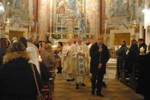 Na kraju misnoga slavlja je u procesiji sa svijećama nošen kip Gospe Lurdske, a na završetku procesije izmoljena je molitva predanja Gospi Lurdskoj.