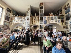 Nakon mise u kapeli zavjetnih darova, koji svjedoče zahvalnost vjernika Majci Božjoj Trsatskoj, hodočasnici su poslušali predavanje o povijesti svetišta. Među brojnim zavjetnim slikama mnoštvo je brodova, a među njima Dubrovčani nisu mogli ne uočiti sliku svetoga Vlaha. U blizini svetišta na uzvisini iznad kanjona Rječine s Trsatskoga kaštela se pruža pogled na cijelo riječko područje, a i naslućuje burna vojna povijest ovog utvrđenog područja. Osim mogućnosti fotografiranja, hodočasnici su iskoristili priliku osvježiti se u ugostiteljskom objektu ispod suncobrana koji su ih štitili od vrelog podnevnog sunca.