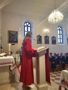 Obraćajući se krizmanicama i krizmanicima biskup je, tumačeći misna čitanja, primijetio kako je strah životni pratitelj. Učenici su se bojali primiti Pavla nakon poznatog događaja u Damasku, kada je Pavao susreo Gospodina. Posrednik u toj situaciji je bio Barnaba i učenici su onda Pavla prihvatili. Od tada pa ubuduće nema propovjednika kao što je bio sv. Pavao, koji je sa žarom propovijedao putujući i šireći Radosnu vijest. Biskup je također govorio o darovima Duha Svetoga među kojima je i strah Božji.