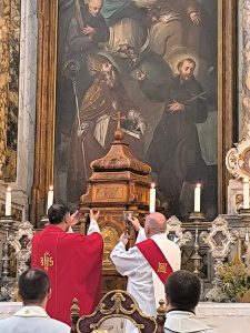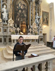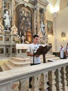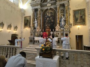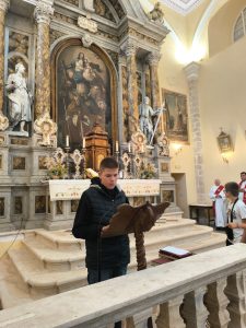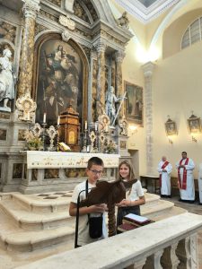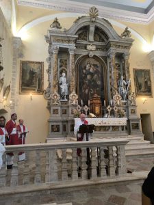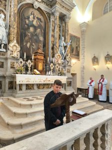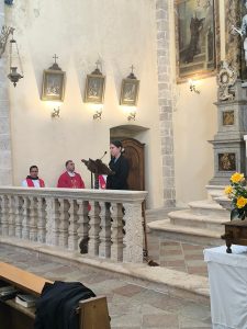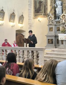 Nakon toga uputili su se prema mjestu Prčanj gdje su u samostanu sv. Nikole sudjelovali na misi koju je predvodio biskup Glasnović u koncelebraciji s nazočnim župnicima. Biskup je ministrantima govorio o sv. Luki koji nije osobno vidio Isusa za njegovog zemaljskog života kao što ga nisu vidjeli ni današnji vjernici. Surađivao je sa sv. Pavlom i u svom evanđelju je pisao o Isusu i njegovom životu, pa je biskup istaknuo kako je “važan svatko tko nam u životu pokaže na Isusa”. U Djelima apostolskim Luka je pisao o vremenu Crkve i pokazao put širenja Riječi Božje od Svete Zemlje do na kraj svijeta. Biskup je također ministrantima naglasio važnost euharistije i dobrote u životu.