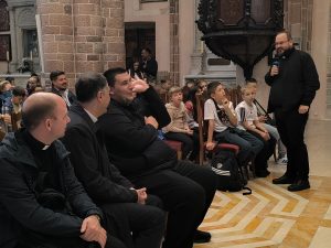 Zbog kiše koja je padala tijekom poslijepodneva, planirani program druženja nastavljen je u katedrali. U ugodnom ozračju zajedništva ministranti su se međusobno predstavili, navodeći iz kojih župa dolaze, koji je svetac zaštitnik župe te su ukratko izvjestili o njihovom djelovanju.
