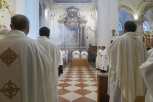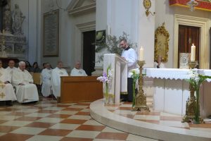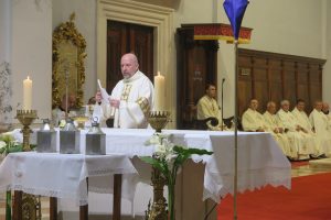 Godišnja svetkovina svećenike poziva da uđu ponovno u tajnu svećeničkog poziva, života i službe, u tajnu jedinog velikog svećenika Isusa Krista kojem su u Crkvi po sakramentu svetog reda suobličeni, rekao je u propovijedi biskup Glasnović. Spomenuo se, uz ostalo, svećenika koji su u protekloj godini preminuli kao i onih koji ove godine slave neke svećeničke jubileje. Srebrni jubilej tako slave don Željko Batinić, don Ivica Pervan i don Miroslav Karatović, dok ove godine nema zlatomisnika. Šezdeset godina svećeništva slavi don Slavko Grubišić.