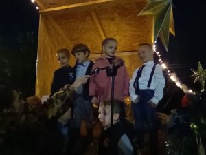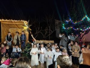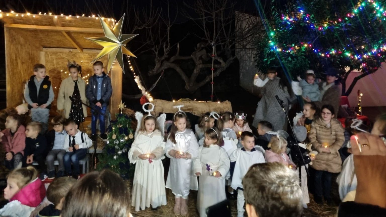 Ispred prigodne ‘štalice’ djeca su pročitala poticajne misli o Isusovom rođenju. Obučeni u ‘anđele’ prenijeli su pjesmom božićne poruke radosti, mira i ljubavi svim ljudima.