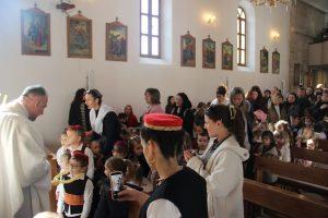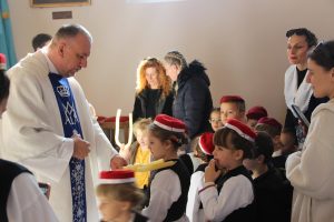 Prije dječjeg programa u crkvi je slavljena misa s blagoslovom svijeća i grličanjem koju je predvodio i na njoj propovijedao župni vikar p. Marijan Zubak u suslavlju sa župnikom p. Davorom Lukačevićem. Predvoditelj je u propovijedi kazao kako Gospodin uvijek nalazi način za uslišanje molitve te kako je uslišanje moguće ako je ljudsko srce ustrajno i pripravno za čin za kojeg moli.