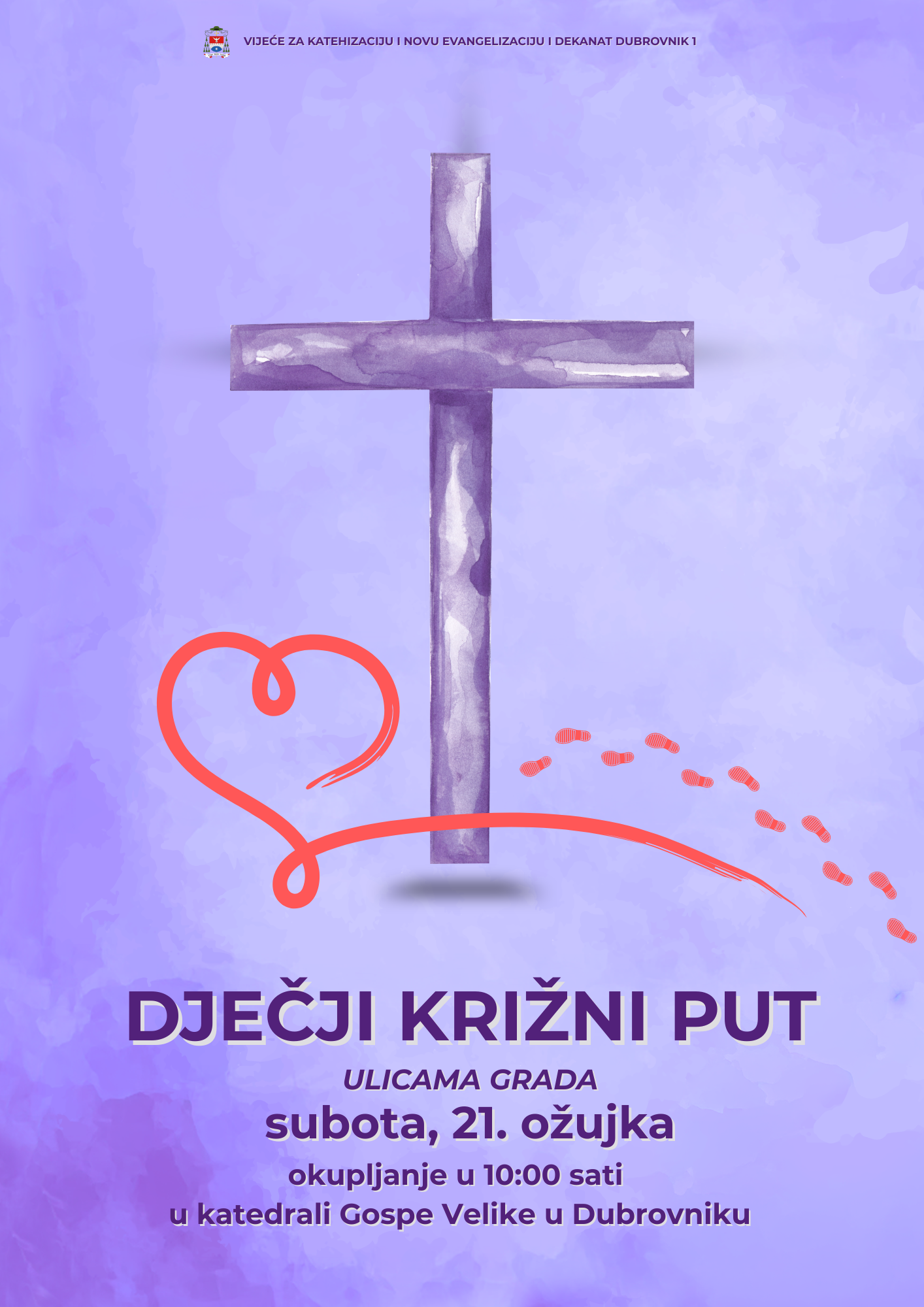 Za osnovnoškolsku djecu s područja grada Dubrovnika, dekanat Dubrovnik 1 organizira dječji križni put ulicama Grada u subotu 21. ožujka s početkom u 10 sati u katedrali. U slučaju lošeg vremena cijeli križni put molit će se u katedrali.
