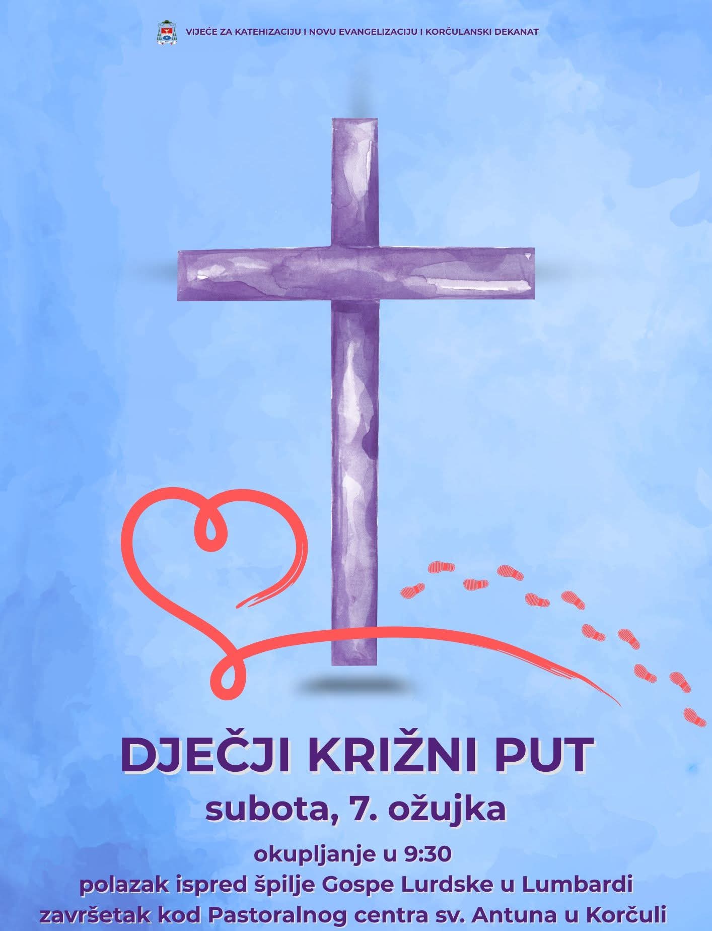 Dječji križni put u suradnji Vijeća za katehizaciju i novu evangelizaciju Dubrovačke biskupije s dekanatima Dubrovnik 1, Pelješac i Korčula organizirat će se za osnovnoškolsku djecu na tri lokacije.
