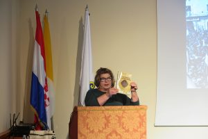 Predstavljajući knjigu dr. Jareba, profesorica Stojan je kazala kako je knjiga svojom naracijom može pridonijeti „obnovi posustalog ili uspavanog duha“, zajedništva i uzajamnosti. U njezinom središtu je lik kralja Tomislava i njegova krunidba na Duvanjskom polju 925. godine. U svijesti većine Hrvata kralj Tomislav je prisutan kao povijesna veličina i utemeljitelj ujedinjenog, snažnog, neovisnog kraljevstva. Autor je istražio mit o Tomislavu što je u knjizi predstavljeno te je dr. Stojan govorila o nekim njegovim elementima. Prenijela je romantični zanos koji je nastao i širio se u hrvatskom narodu uz proslavu 1000. obljetnice Tomislavova krunjenja. U organizaciji svehrvatske proslave istaknuli su se osnivači Družbe „Braća hrvatskog zmaja“. Svoje izlaganje dr. Stojan je završila pitanjem: „Hoćemo li i mi, iz komfora zaštićenosti temeljnih vrijednosti društva i nacionalnih interesa, istim žarom i jednakim romantičnim zanosom poput naših ugnjetenih predšasnika proslaviti 1100. obljetnicu Hrvatskog Kraljevstva?“