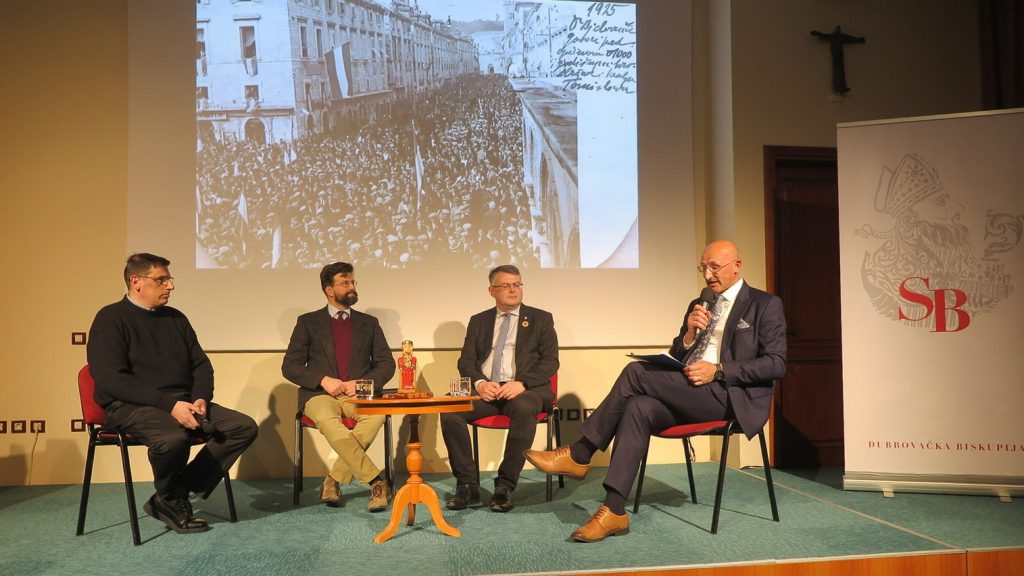 Okrugli stol “Obilježavanje 1100. obljetnice Hrvatskog Kraljevstva (925.-2025.) u Dubrovniku” održan je u petak 21. ožujka u dvorani Ivana Pavla II. u Dubrovniku, a na njemu su govorili znanstveni savjetnik Hrvatskog instituta za povijest i potpredsjednik Matice hrvatske prof. dr. sc. Mario Jareb, profesor na Odsjeku za povijest Filozofskog fakulteta u Zagrebu izv. prof. dr. sc. Trpimir Vedriš i viši kustos u Muzejima Grada Dubrovnika mr. sc. Tonko Marunčić. Moderator je bio voditelj studija Povijest Jadrana i Mediterana na Sveučilištu u Dubrovniku izv. prof. dr. sc. Marinko Marić.