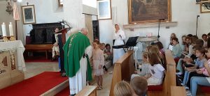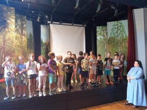 U nedjelju ujutro djeca koja su sudjelovala na oratoriju zajedno s redovnicama okupila su se na euharistijskom slavlju u župnoj crkvi Svih svetih, a župnik i predvoditelj mise don Željko Kovačević podijelio je djeci diplome.