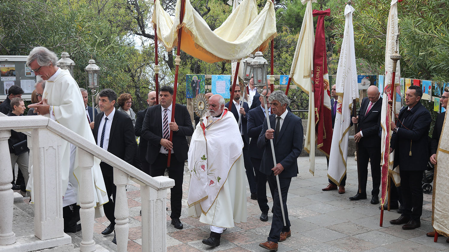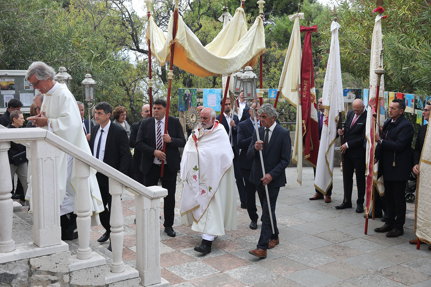 Nakon mise uslijedila je procesija oko crkve u kojoj su nošeni župni barjaci, a pod nebnicom je p. Mandurić nosio Presveti Oltarski Sakrament. Liturgijsko pjevanje predvodio je Mješoviti župni zbor.