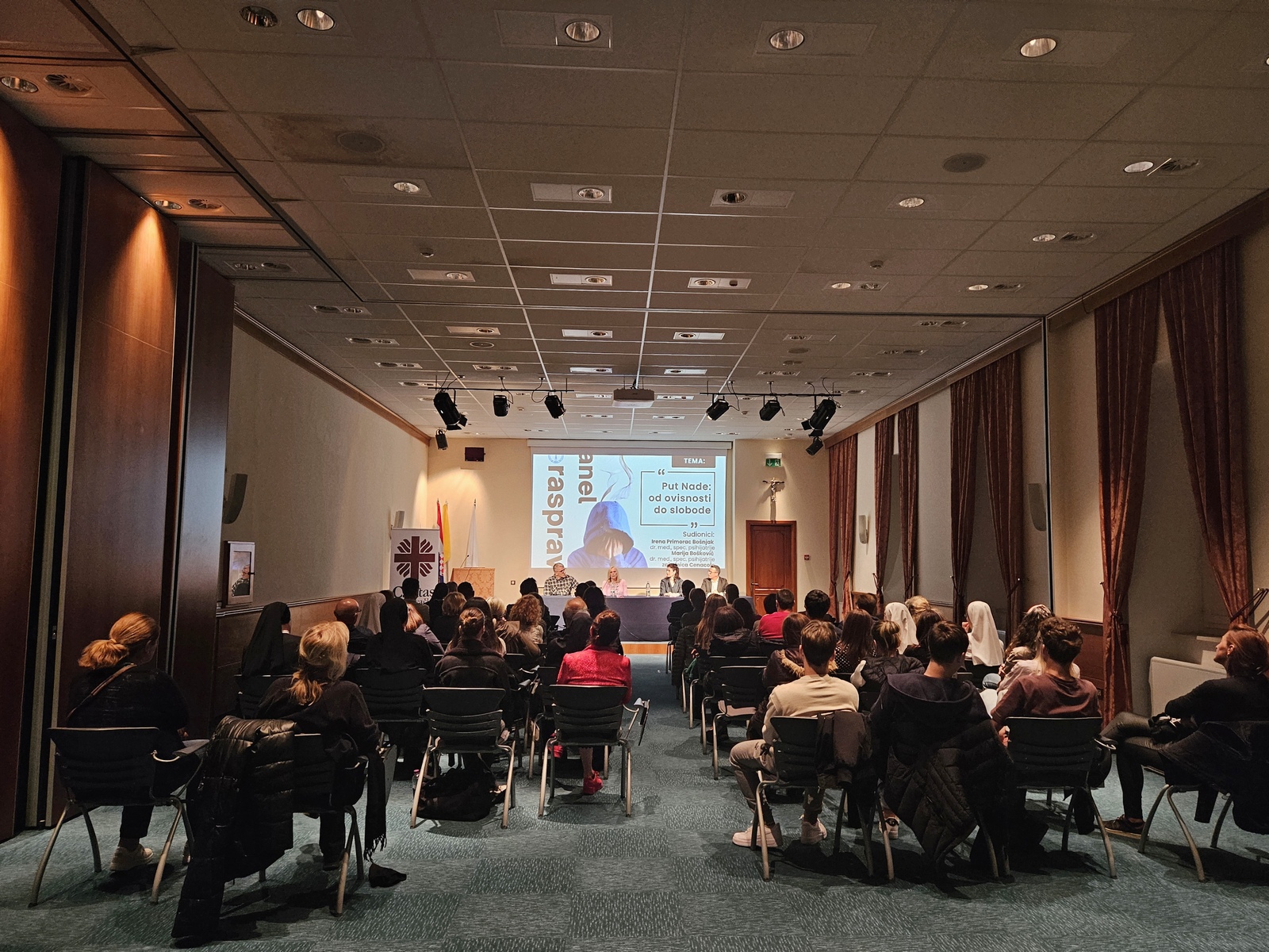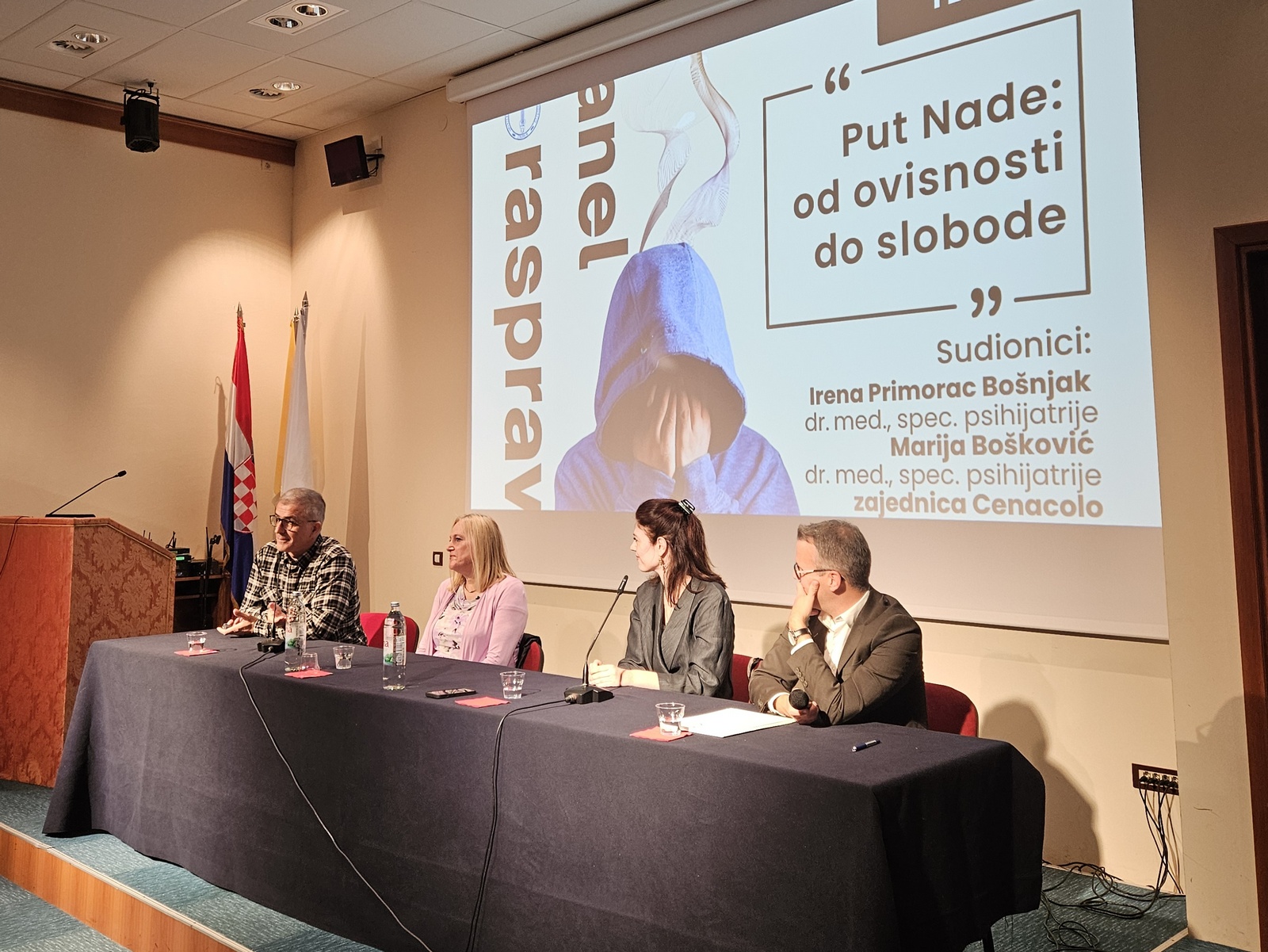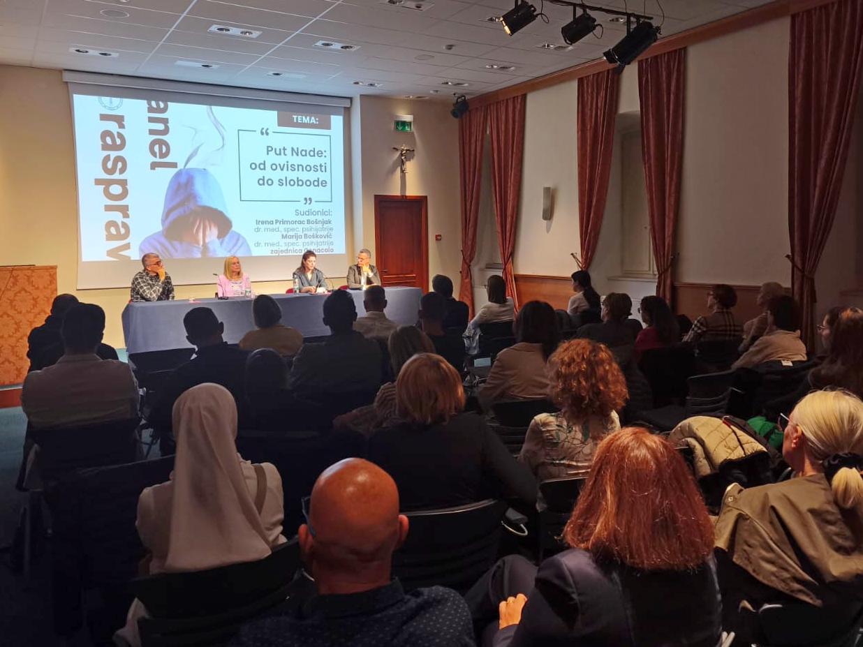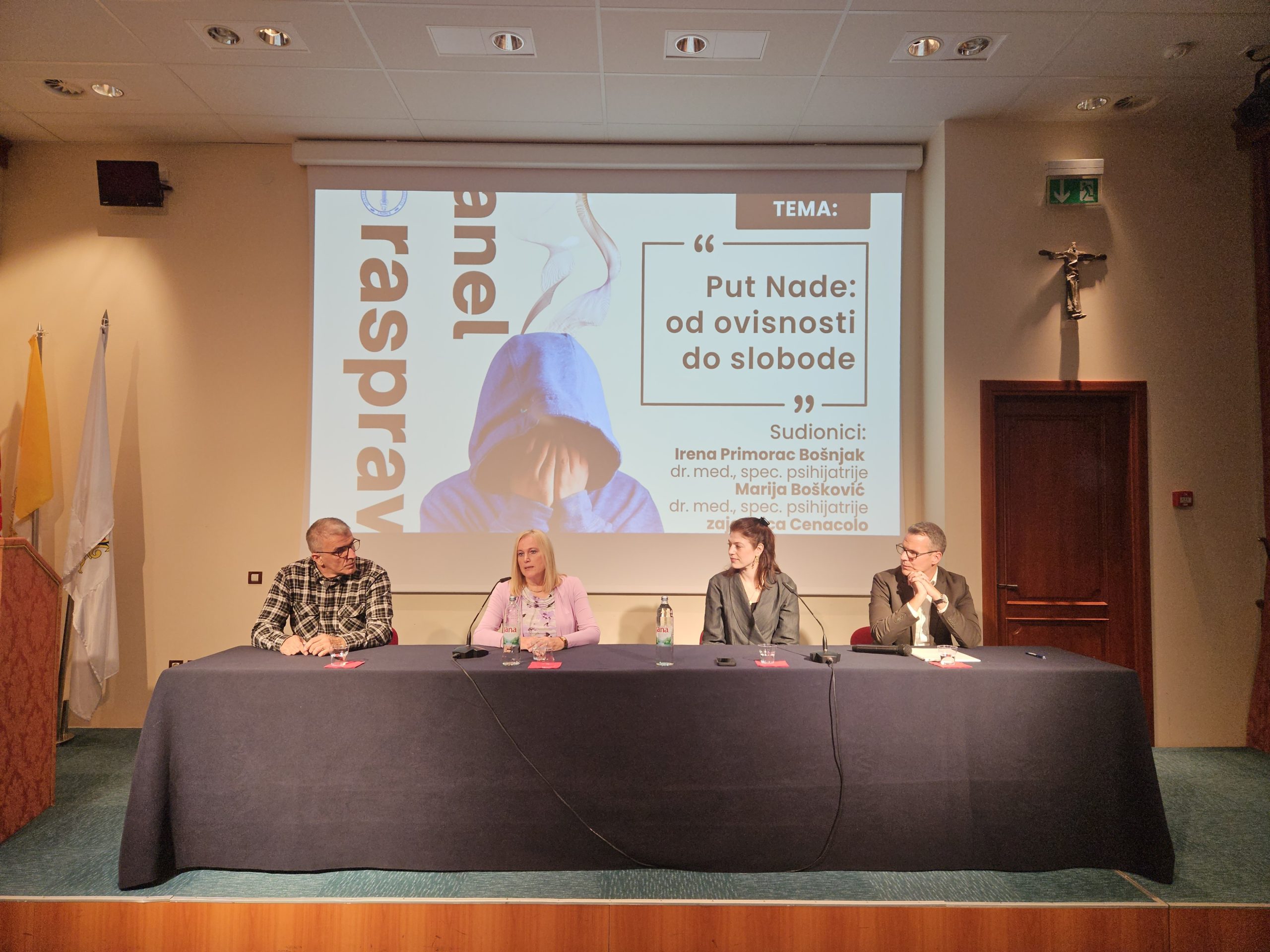 Panel rasprava na temu „Put Nade: od ovisnosti do slobode“ održana je u četvrtak 2. listopada u dvorani Ivana Pavla II. u Dubrovniku u Tjednu Caritasa Dubrovačke biskupije. Na panelu su sudjelovale dvije liječnice specijalistice psihijatrije, Irena Primorac Bošnjak iz Zavoda za javno zdravstvo Dubrovačko-neretvanske županije i Marija Bošković ispred dubrovačke podružnice Hrvatskog katoličkog liječničkog društva te predstavnici zajednice Cenacolo.