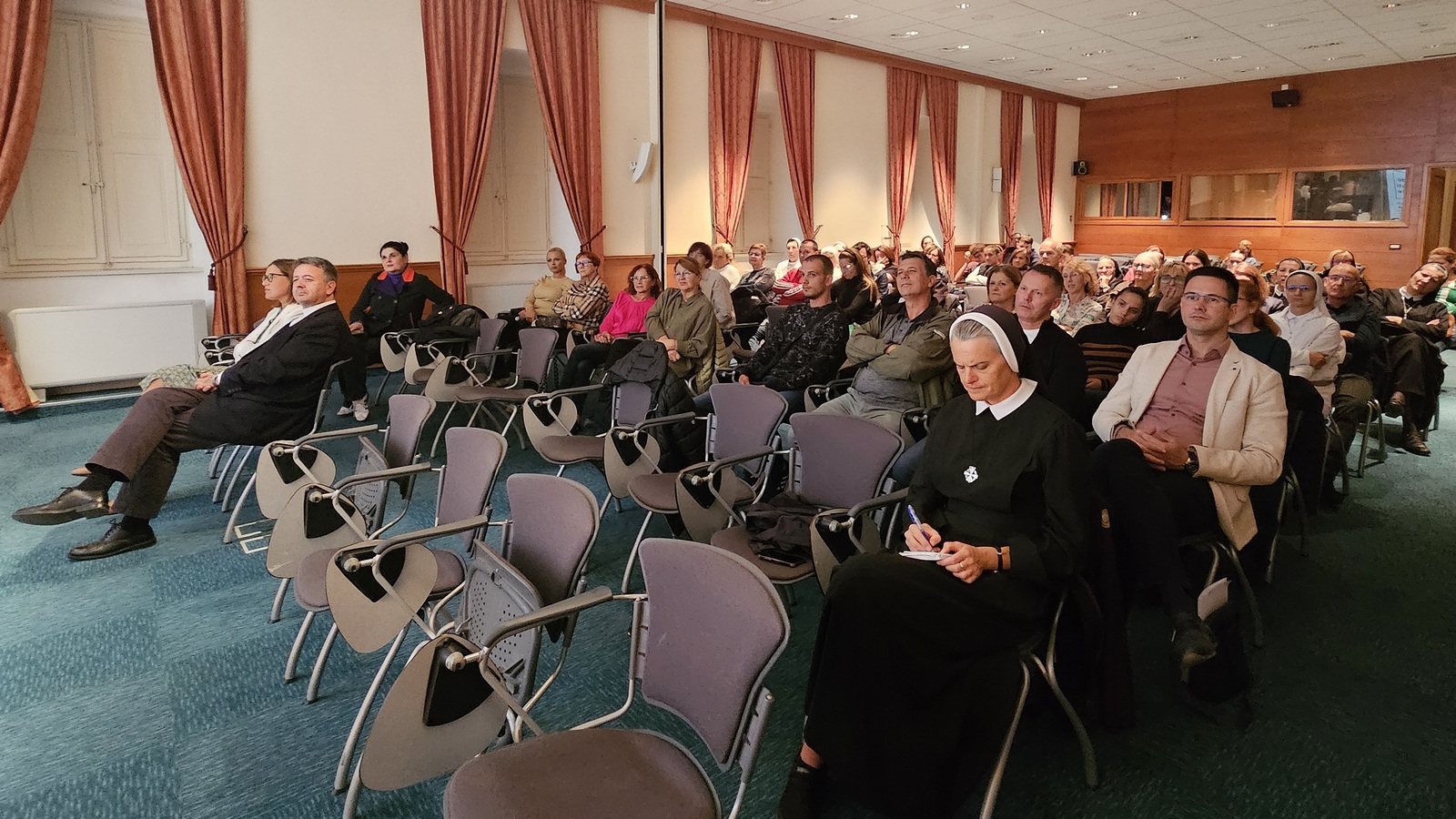 Nakon stručnog osvrta o razlozima razvoja ovisnosti i njihovim posljedicama, svoj životni put od ovisnosti do slobode iznio je voditelj zajednice Cenacolo u Ugljanima Joško Hrvatić. U izlaganju je posvjedočio koliko mu je na putu izlječenja pomogla zajednica Cenacolo i vjera u Boga. Naglasio je da su ljudi jedni drugima važna pomoć, usporedivši ljude s anđelima na zemlji koji su tu da pruže ruku pomoći u potrebi. Nakon njega, put iz tame ovisnosti u slobodu posvjedočio je bračni par Vuko koji je govorio o ovisnosti njihovog najstarijeg sina. Osvrćući se na svoj život, posvjedočili su da im je povratak vjeri pružio novu šansu da okupe i sačuvaju obitelj i izađu iz pakla ovisnosti.