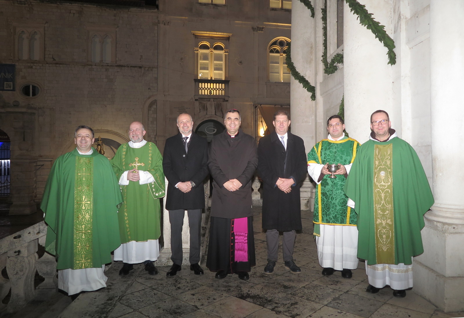 Prije početka mise dubrovački biskup Roko Glasnović je blagoslovljenom vodom poškropio vjernike te zauzeo mjesto na sedesu sudjelujući tako u misnom slavlju trodnevlja.