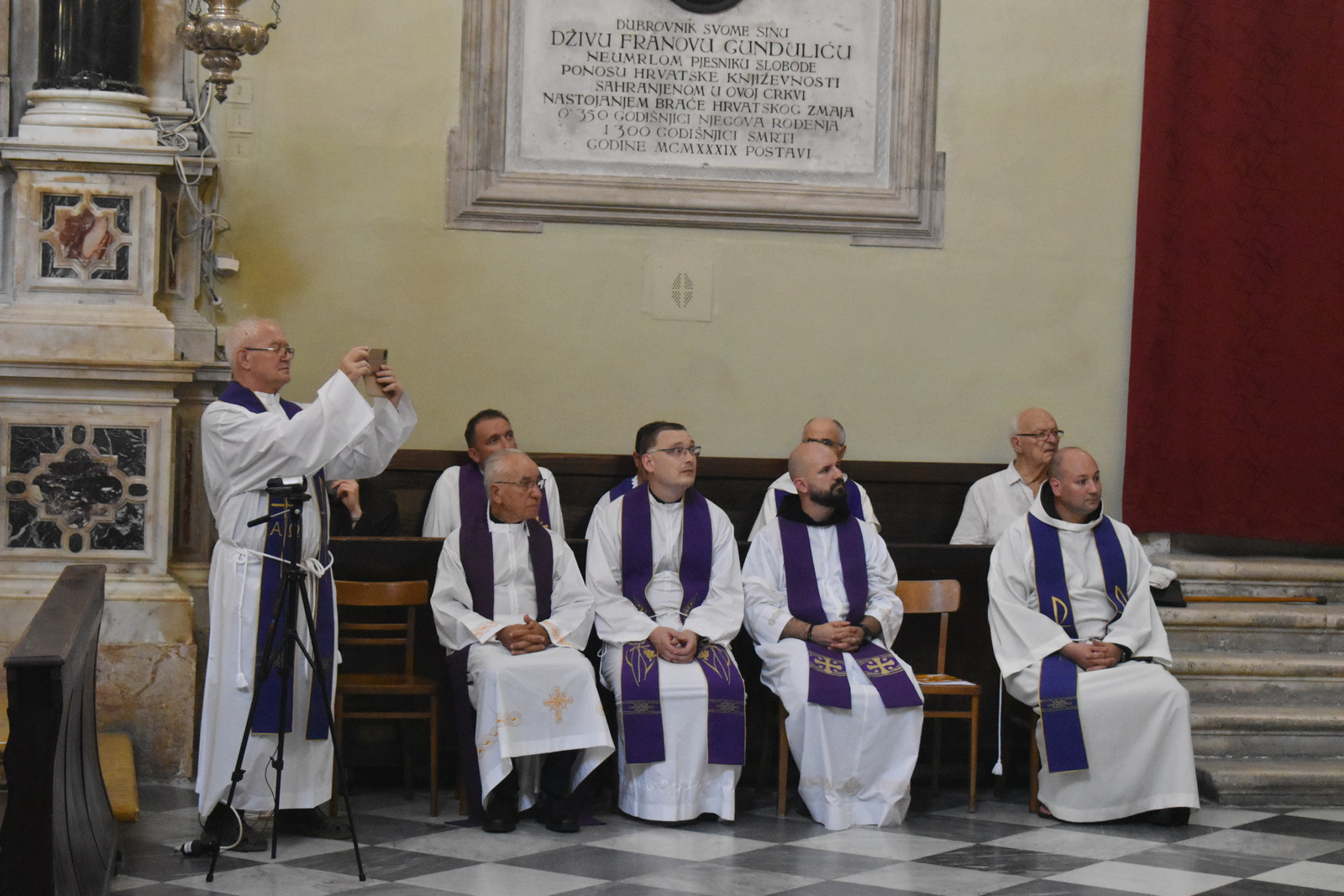 Dubrovački biskup je na početku mise, na kojoj je suslavilo tridesetak svećenika i redovnika pristiglih iz raznih krajeva kao i veliko mnoštvo vjernika, također izrazio sućut braći franjevcima, pokojnikovoj rodbini i svima koji su ožalošćeni.