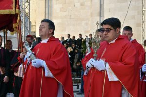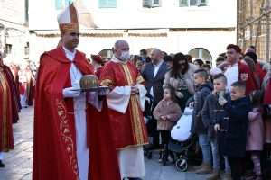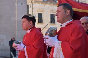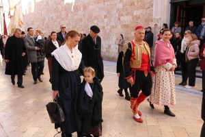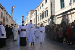 Veličanstvena procesija koju stanovnici dubrovačkog kraja posebno vole, u kojoj rado sudjeluju ili je dođu pogledati, krenula je nakon središnjeg misnog slavlja Feste sv. Vlaha ulicama Dubrovnika. Meditativne tekstove čitala je Ivana Lenert, a Mješoviti katedralni zbor i zbor crkve svetog Križa iz Gruža pod vodstvom prof. Maje Marušić predvodili su pjevanje.
