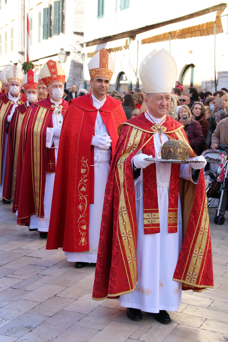 Veličanstvena procesija koju stanovnici dubrovačkog kraja posebno vole, u kojoj rado sudjeluju ili je dođu pogledati, krenula je nakon središnjeg misnog slavlja Feste sv. Vlaha ulicama Dubrovnika. Meditativne tekstove čitala je Ivana Lenert, a Mješoviti katedralni zbor i zbor crkve svetog Križa iz Gruža pod vodstvom prof. Maje Marušić predvodili su pjevanje.