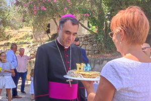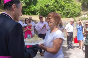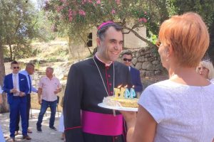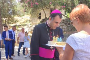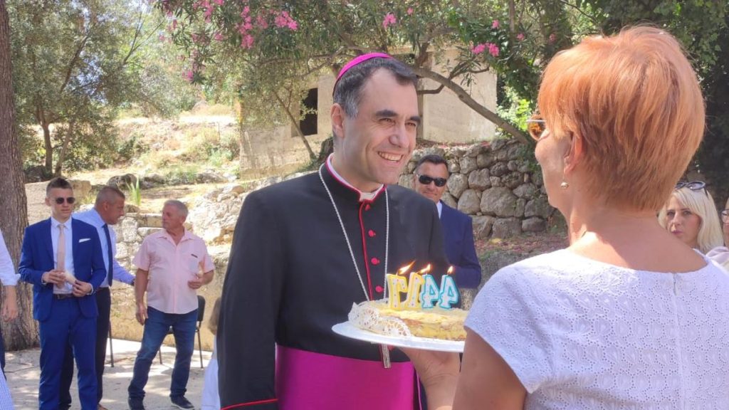 Toplu dobrodošlicu dubrovačkom biskupu u Orašac župljani su nakon mise pokazali posebnim malim znakom pažnje: tortom s upaljenim svijećama koje je biskup onda puhanjem ugasio.