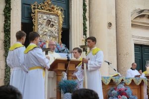 O vrijednosti Marijine poniznosti govorio je u svojim obraćanjima i papa Franjo te je biskup naveo jedan takav citat: “Marija je ‘milosti puna’ upravo zbog svoje poniznosti. I za nas je poniznost polazna točka, početak naše vjere… Onaj koji je pun sebe ne ostavlja prostora Bogu. A mi smo mnogo puta puni sebe, dok onaj koji ostaje ponizan dopušta Gospodinu da čini velika djela.” Biskup Glasnović je također naveo primjere Marijine poniznosti te potaknuo vjernike da slijede njezin primjer vjere i kreposnog života, primjer one koja donosi drugima Isusa. Gospino uznesenje na nebo je znak Božje pobjede i slave.