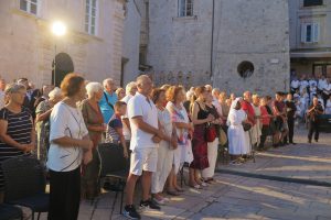 Katedralni župnik je na kraju mise uputio riječi zahvale i najavio redoslijed procesije. Zavjetnu sliku Gospe od Porata u procesiji su nosili pomorci: Ivica Ljuban, Frano Legeny, Lukša Moretić, Željko Pulić, Antonio Đanović i Maro Mihaljević, a članovi Bratstva Presvetog Sakramenta nosili su barjak i svijeće uz zavjetnu sliku.
