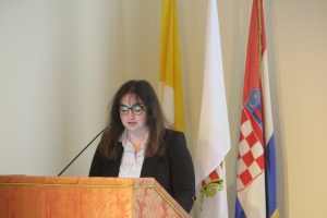 Okupljene u dvorani na početku je pozdravila predsjednica Vijeća za kulturu i znanost Dubrovačke biskupije Marijeta Radić Grabovac koja je podsjetila na više od trideset godina trajanja tribina “Ususret sv. Vlahu” pomoću kojih se posjetitelji na duhovnoj i znanstveno-stručnoj razini pripremaju za Parčev blagdan. Predstavila je i predavačicu.