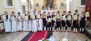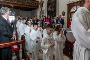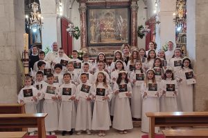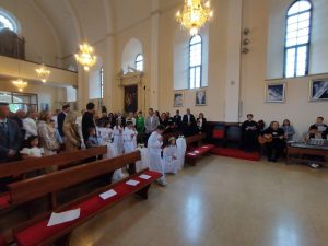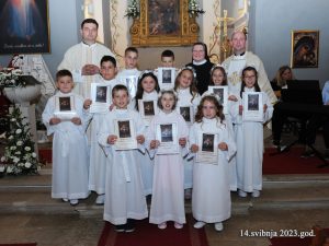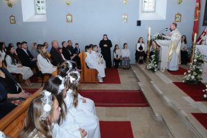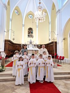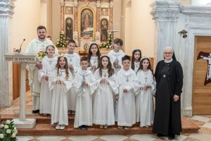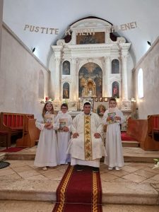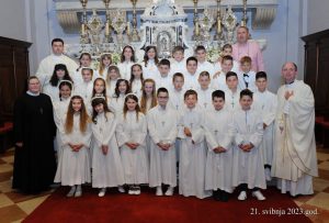 Slavlja Prve pričesti priređuju se od Uskrsa u našim župnim zajednicama i drugim crkvama. Djeca u bijelo obučena primaju tada prvi put Isusa u hostiji.