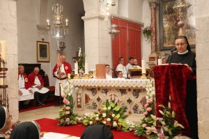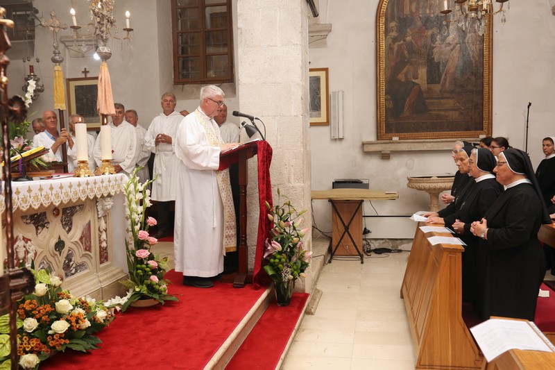 Nadbiskup Hranić je u propovijedi govorio o biti zavjeta po kojima sestre postaju znak nade današnjem svijetu u potrebama i za liječenje njegovih rana. Po redovničkim zavjetima sestre su pozvane svakodnevno odustajati od sebe da bi služile svijetu po vrjednotama koje je Isus unio u svijet. Pozvao je sestre da poput njihove utemeljiteljice bl. Marije Propetoga budu spremne živjeti svoje izabranje i povjereno poslanje.