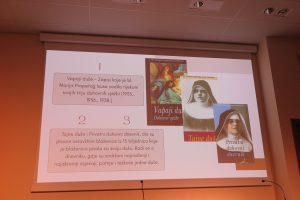 S. M. Katarina Mihić iz Družbe Kćeri Milosrđa u izlaganju naslovljenom „Milim sestrama – pouke bl. Marije Propetog Isusa Petković“ govorila je o posljednjoj knjizi o njihovoj blaženoj utemeljiteljici u kojoj su sadržane njezine pouke iz perioda od 1928. do 1935. godine. U planu je izdavanje i ostalih blaženičinih pouka koje je do 1964. godine ona pisala ili su ih njezine sestre zapisivale, a ona ih korigirala. Spomenula je i kako je na početku blagopokojni dubrovački biskup Josip Marčelić potaknuo Mariju Petković, još dok je bila djevojka, na pisanje dnevnika. Ona je to iz poslušnosti jedno vrijeme i činila. Ti zapisi bili su više duhovni dnevnik, “pjesma ljubavi duše” prema Bogu. U trenutku unutarnjih previranja procijenila je kako je biskup od nje tražio da piše, ali ne i da sačuva ono što je napisala, pa je ona te bilješke „pobožno izgorjela“. Kasnije je opet počela pisati biografiju, te su, uz njezinu autobiografiju, objavljenje još tri knjige njezinih spisa. Pisala je na tri jezika, hrvatskom, španjolskom i talijanskom, ovisno o tome gdje je živjela. S. Mihić je također detaljnije predstavila neke poruke. “Nama sestrama ove pouke su uistinu veliko bogatstvo, puno puta su nas ohrabrile i posvijestile nam taj Majčin duh”, kazala je predavačica i dodala: “U radu s laicima vidimo da te pouke uistinu puno i njima znače.”