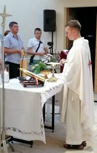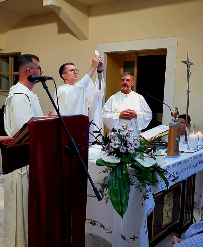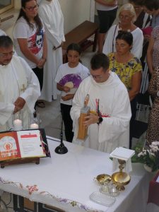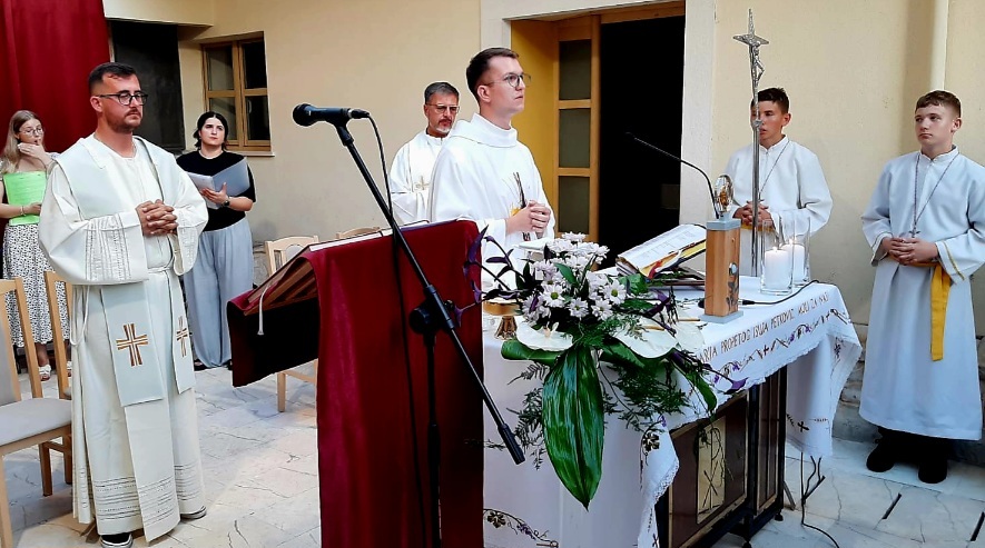 Šestoga dana devetnice u subotu 5. srpnja u samostanskom dvorištu Družbe Kćeri Milosrđa u Blatu euharistijsko slavlje predslavio je župni vikar u župi Mučeništva sv. Ivana Krstitelja u Gradini don Luka Cvitanović.
