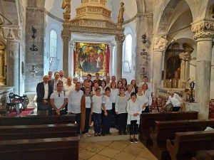 Nakon kratke osobne molitve pred grobom blaženice, krenusmo u Velu Luku koju mala ne’š zaboravit’ i crkvu sv. Josipa, a onda prema gradu Korčuli. Puni duha radosti, što bi zbor nego pjevao, pa se tu, kod koga nego Šibenčana, našla neobrana maslina, koju i u duhu današnjeg vremena, nema tko da bere, a i pape zanavik je zaspa! Kome bi šumilo ovo naše lipo sinje more da Hrvatske nije, i zlatne Slavonije, i Like dike Velebita… Pjesme lijepe, srce gori od miline i žara one hrvatske krvi koja se stoljećima lila za Hrvatsku, ali pjesme pune nekog tužnog prizvuka zbog onih koji odlaze iz nje misleći da su tamo masline veće, sočnije, pune uja ka u svići. Ne vjerujem da jesu!…