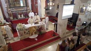 Liturgijsko pjevanje predvodio je Mješoviti katedralni zbor, a nakon mise vjernici su iskazivali štovanje izloženim svečevim moćima.