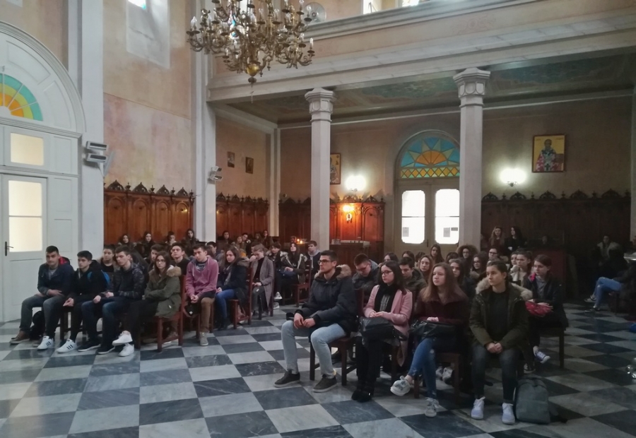 U sklopu nastavne cjeline o povijesti Crkve, učenici drugih razreda Gimnazije Dubrovnik i Medicinske škole Dubrovnik koji idu na Vjeronauk posjetili su u utorak, 14. veljače srpsku pravoslavnu crkvu sv. Blagovještenja u Dubrovniku.