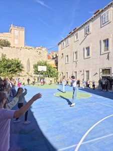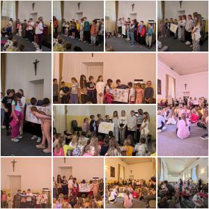 Uz vodstvo mladih župnih animatora djeca su se upoznavala kroz igre, družila i učila plesove. Svećenici, redovnice, vjeroučitelji i roditelji su se brinuli da sve teče u najboljem redu. Susret je završio zajedničkim objedom u Sjemeništu.