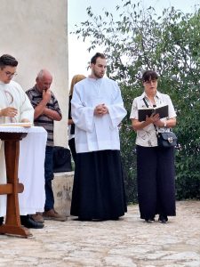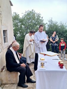 Tako su vjernici župe Svih svetih u Blatu u nedjelju 29. rujna u procesiji krenuli do crkvice sv. Mihovila smještene na brdu, a misno slavlje je predvodio don Željko Kovačević, kanonik Stolnog kaptola i župnik župe Svih Svetih u Blatu. U procesiji su uz župnika i vjernički puk na poseban način sudjelovali bratimi Bratovštine sv. Vincence pod zaštitom Srca Isusova te bratimi Bratovštine Svih Svetih, ministranti, redovnice te policajci koji sv. Mihovila slave kao svog zaštitnika.