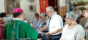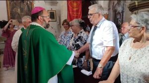 Na kraju mise župnik domaćin je čestitao slavljenicima te pozvao biskupa Stipića da vlastoručno potpiše Uspomenu na ovu obljetnicu, koju su im nakon toga zajednički uručili zajedno sa Apostolskim blagoslovom pape Franje koji je tokom mise bio izložen ispred glavnog oltara te krunicama koje mladenci redovito dobivaju na dan svog vjenčanja.